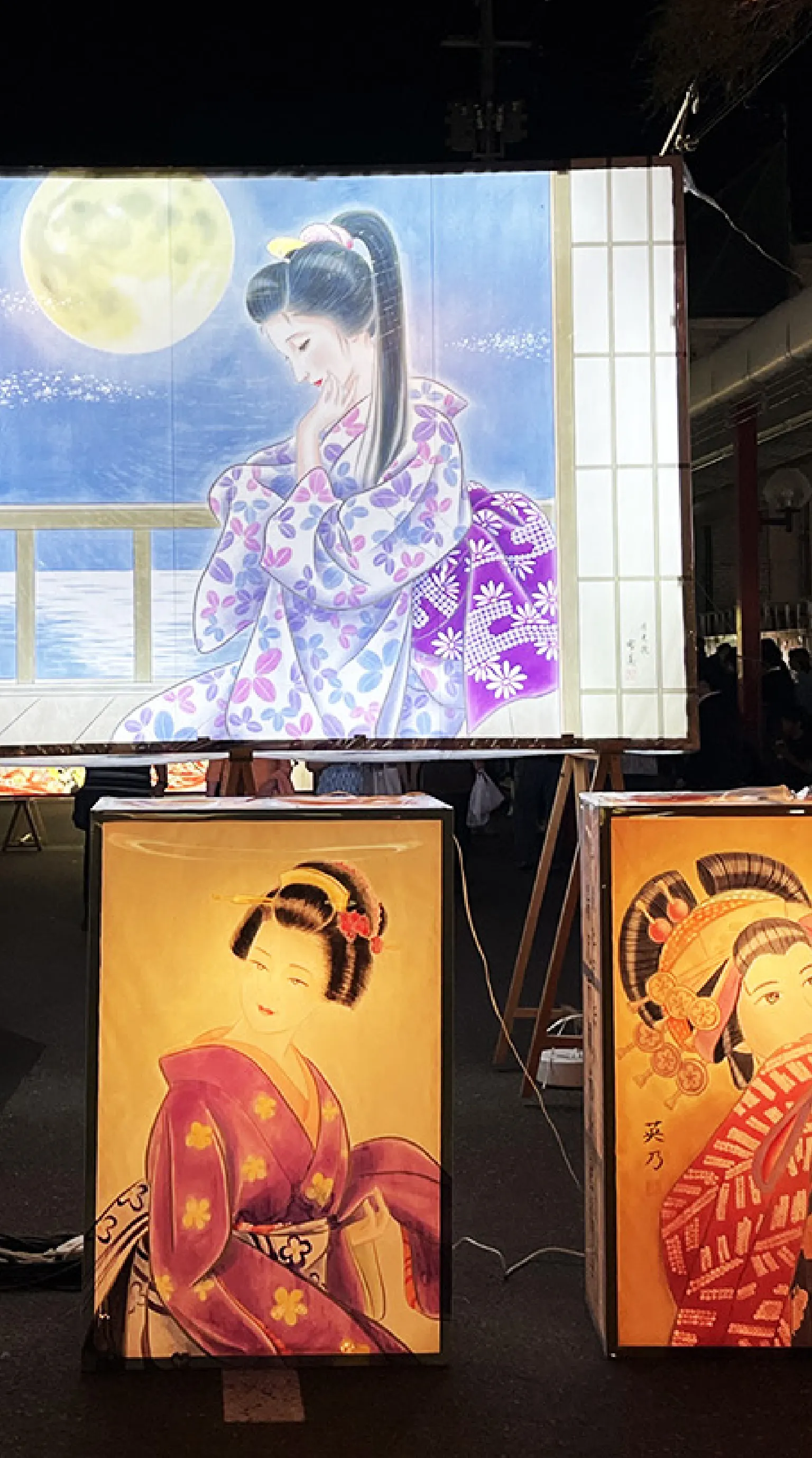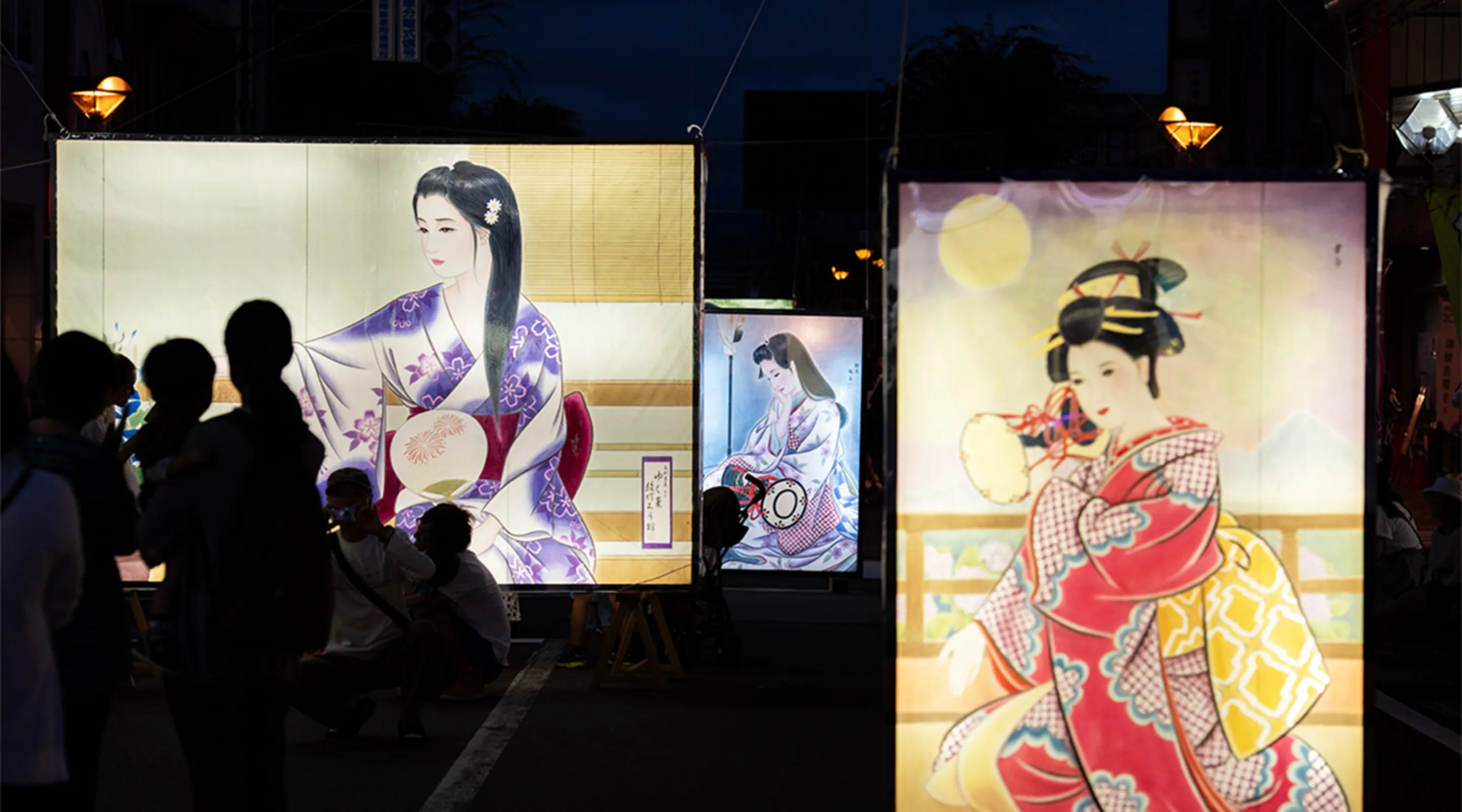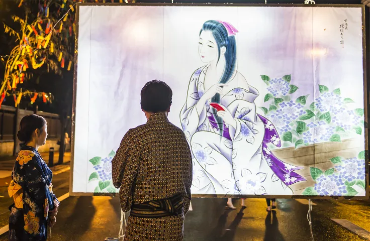 灯がともされた絵どうろうが夜空に浮かび上がり、先人たちの心遣いと美意識が、夏の夜を一層幻想的に彩ります。
