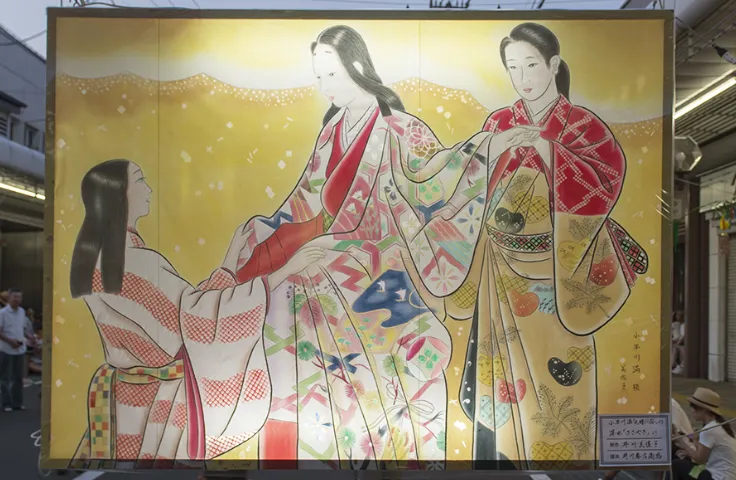 その想いを慰めるために、腰元や町民たちは青竹を立て、五色の短冊や吹き流しを結び、絵どうろうを屋根の軒先に飾って、姫君のお幸せを祈りました。